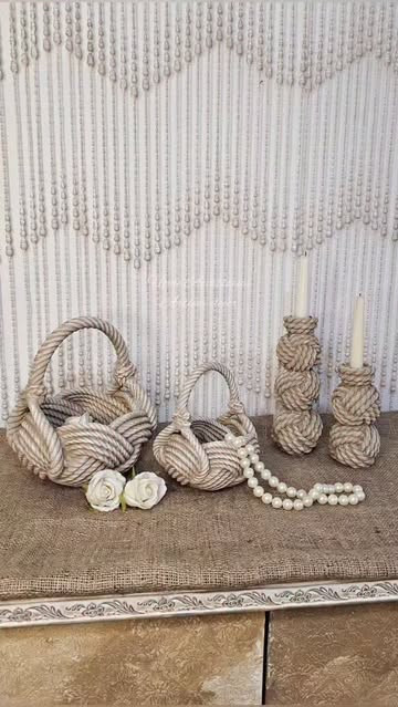 ست جاشمعی و ظرف دسته دار(مدل سبدی) طرح کلاف کاموایی